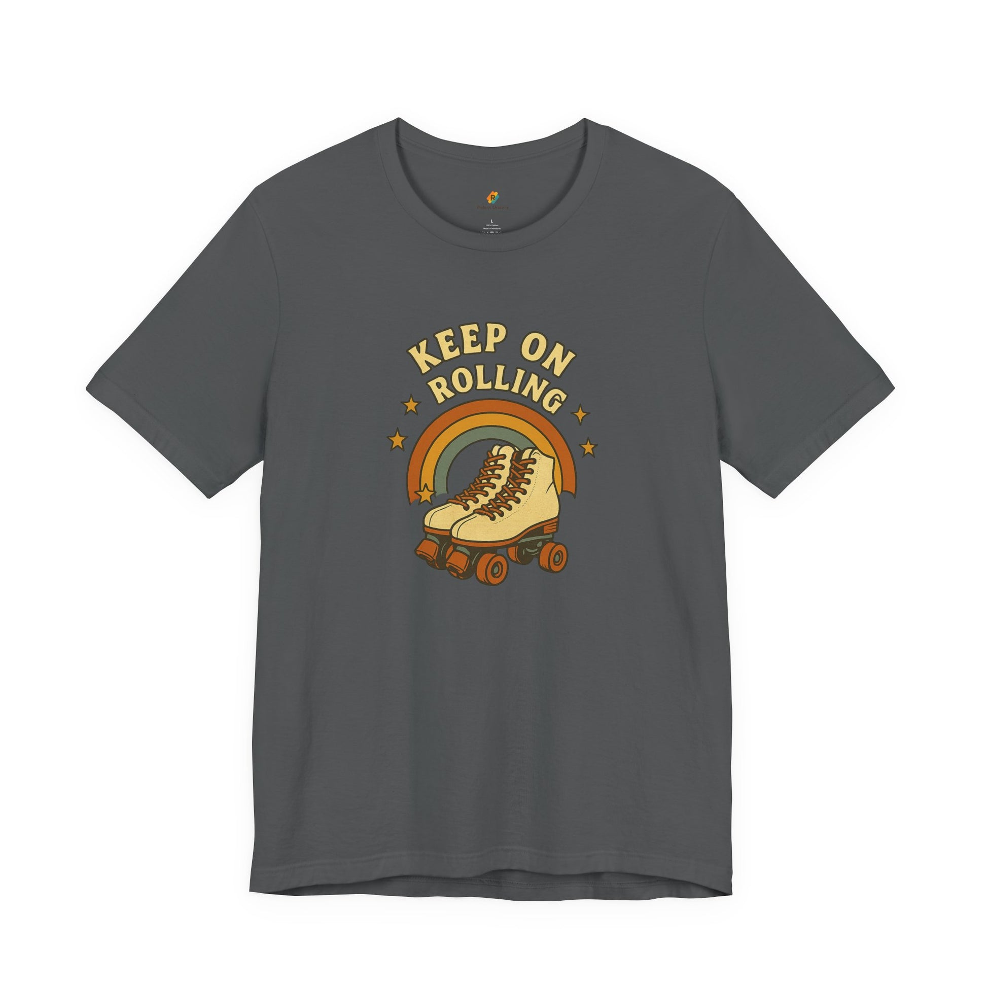 Elevate your wardrobe with this Keep On Rolling unisex cotton tee.