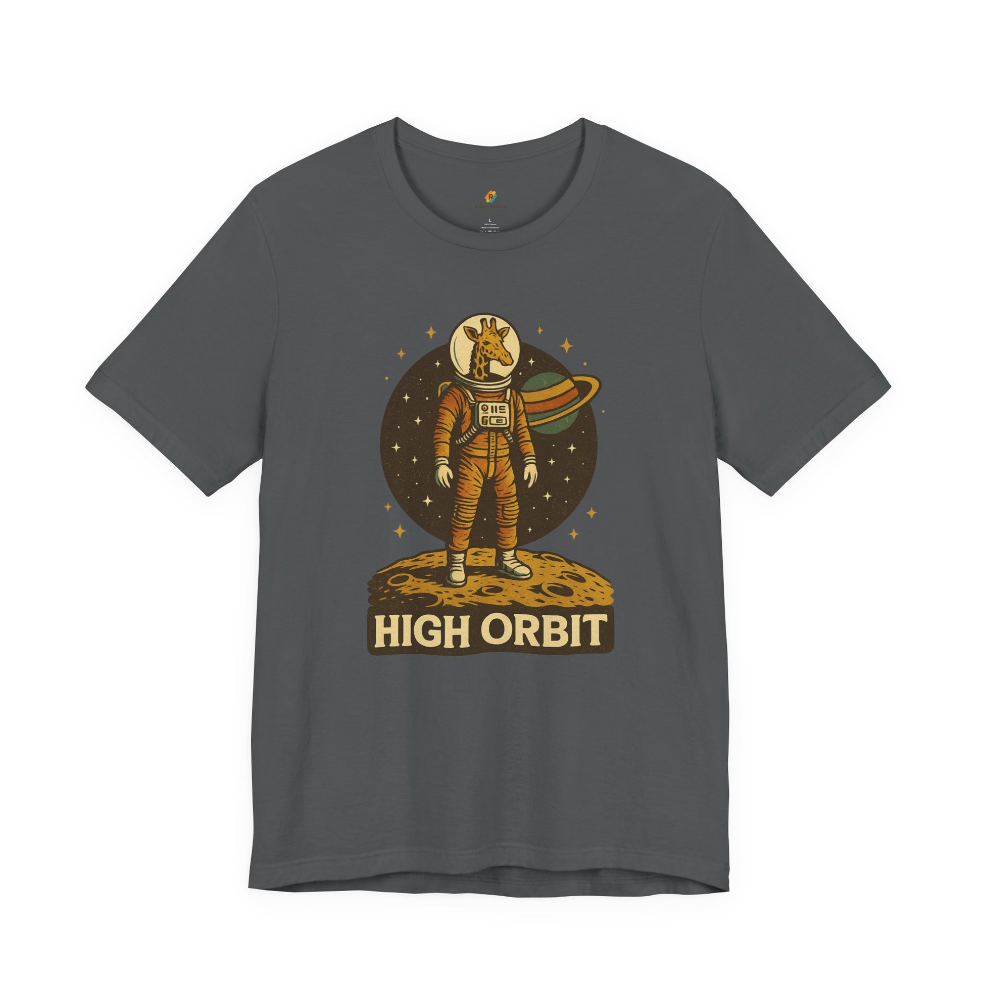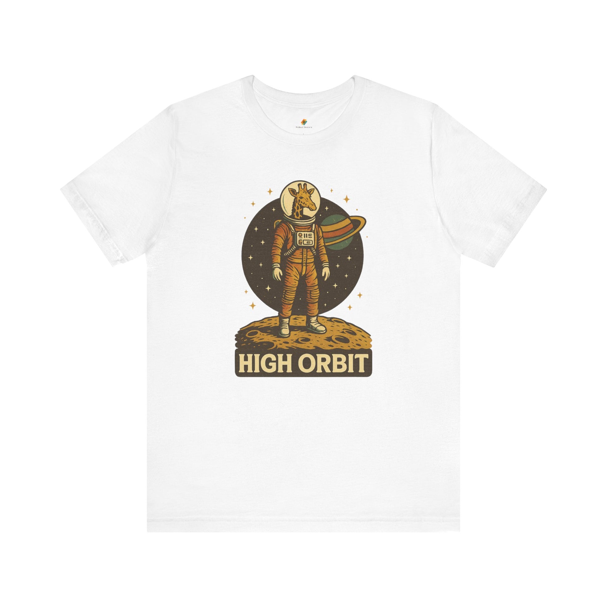 High Orbit - Old School Giraffe Astronaut in Space - Unisex 100% Cotton T-shirt
