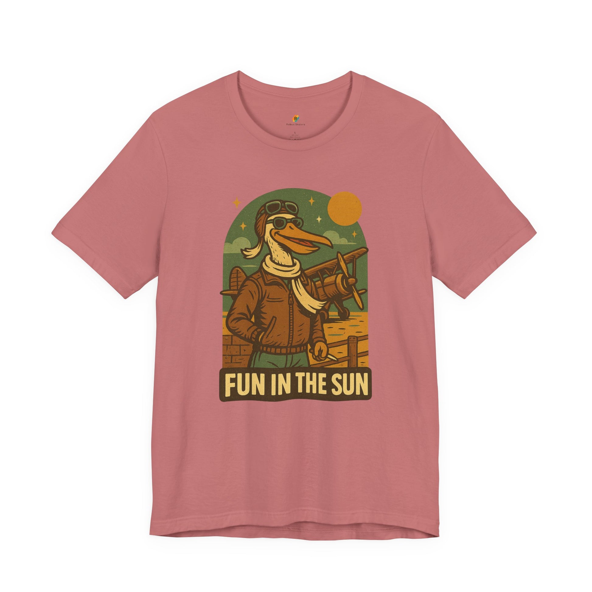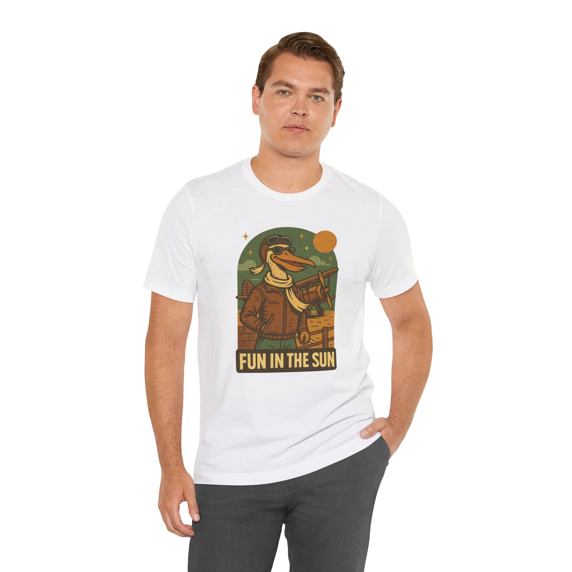 Fun in the Sun - Retro Funny Old School Veteran Pilot Pelican - Unisex 100% Cotton T-shirt